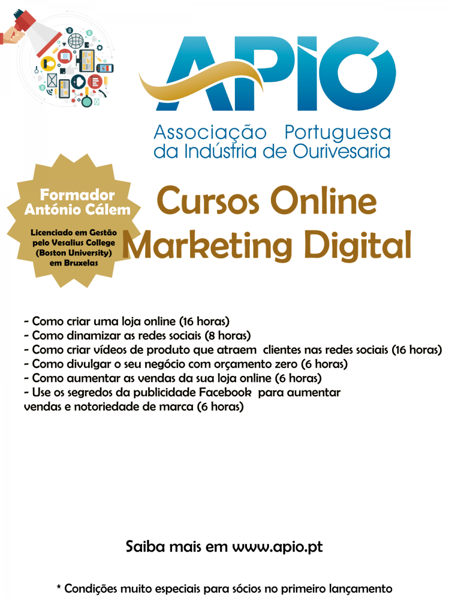 A era digital veio para ficar e a APIO em parceria com o Dr. António Cálem - Licenciado em Gestão pelo Vesalius College (Boston University) em Bruxelas, lança agora um conjunto de cursos online tendo por base "O Marketing Digital":
