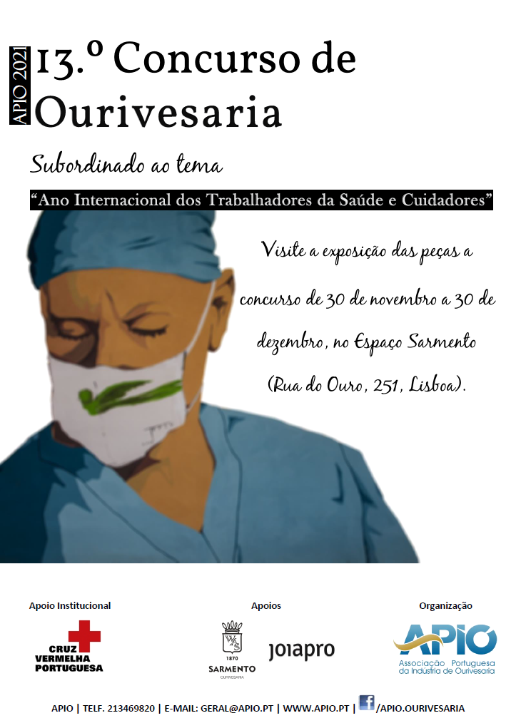 Visite a exposição das peças concorrentes ao 13.º Concurso de Ourivesaria cujo tema é o "Ano Internacional dos Trabalhadores da Saúde e Cuidadores" a partir do dia 30 de novembro e até ao dia 30 de dezembro na Ourivesaria Sarmento.