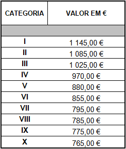 Ficaram estabelecidas as seguintes remunerações mínimas para cada uma das categorias:
