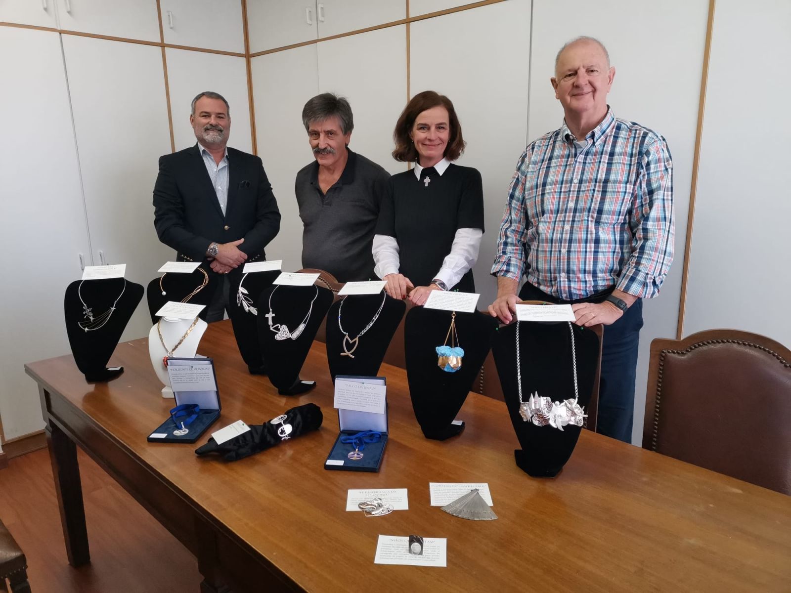 A Reunião de Júri do 15.º Concurso de Ourivesaria teve lugar hoje, 8 de novembro, na sede da APIO. No júri, estiveram presentes o Sr. Carlos Caria, Presidente da Direção da APIO, o Sr. Rodrigo Sarmento, representando a Ourivesaria Sarmento, o Sr. Cláudio Passos, um dos mestres ourives mais conceituados da região de Lisboa, a Sra. Rosa Pedroso Lima em representação da Jornada Mundial da Juventude Lisboa 2023 e o Sr. Ricardo Flamínio em representação da revista JoiaPro, especializada no setor da Ourivesaria. O último, embora não estivesse fisicamente presente, avaliou as peças e participou na votação à distância.