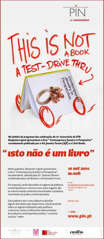 No âmbito do programa das celebrações do 10º aniversário da PIN, Benjamin Lignel apresentará o livro " Contemporary Jewelry in Perspective" recentemente publicado pelo Art Jewelry Forum (AJF) e a LArk Books.