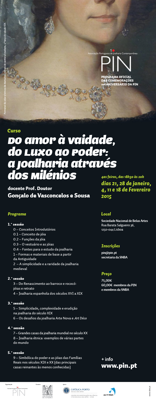 A PIN - Associação Portuguesa de Joalharia Contemporânea comemora o seu 10º aniversário com a abertura de um curso que se intitula "Do Amor à Vaidade, do Luxo ao Poder: a Joalharia Através dos Milénios"