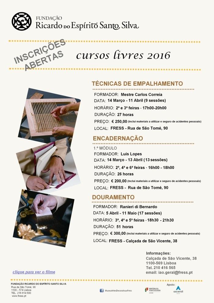- Técnicas de Empalhamento - Encadernação - Douramento Informações através do 210 416 565 ou iao.geral@fress.pt