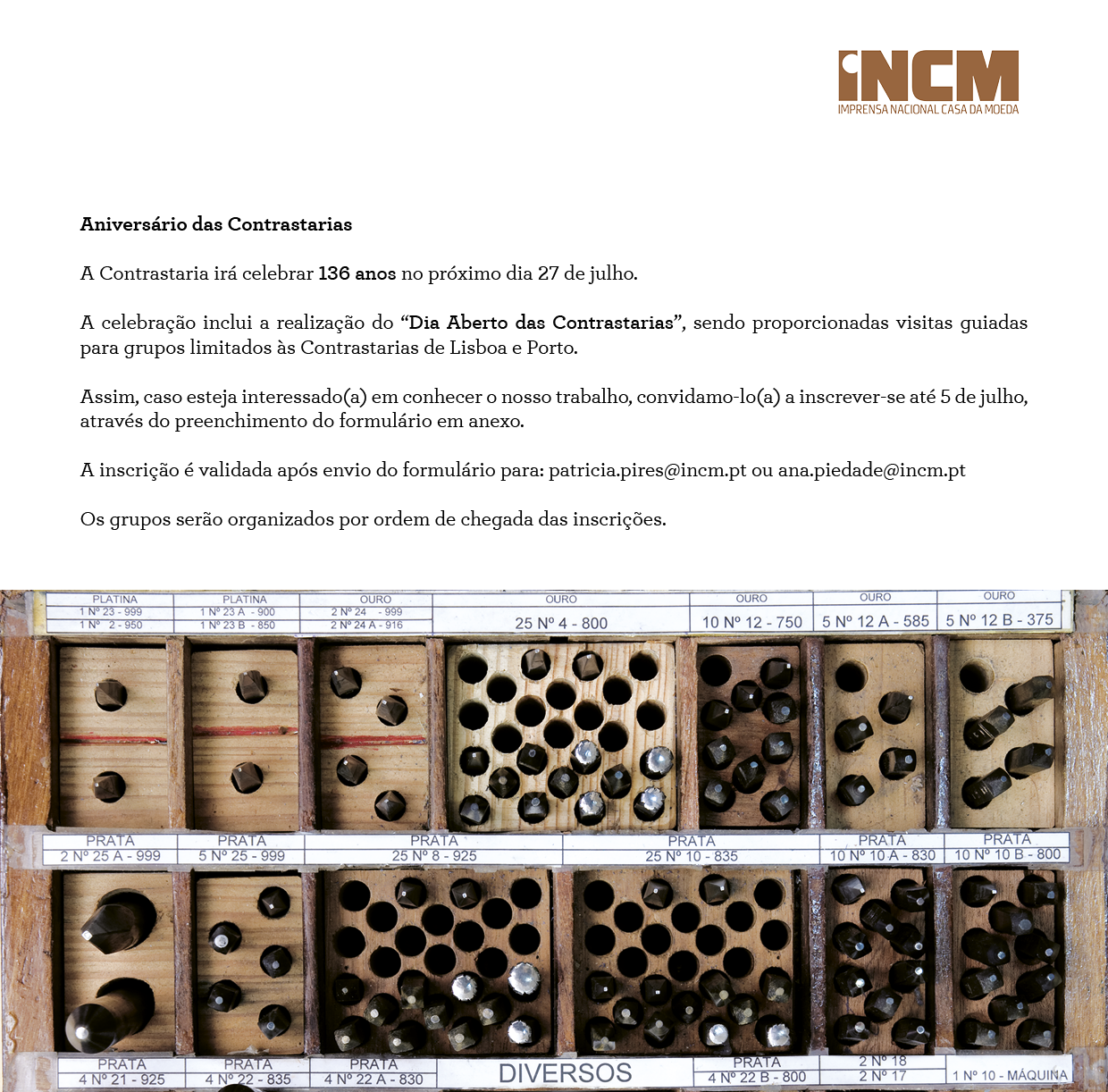No dia 27 de julho as Contrastarias comemoram os seus 136 anos de existência e decidiram realizar um dia aberto, sendo proporcionadas visitas guiadas às Contrastarias de Lisboa e Porto.
